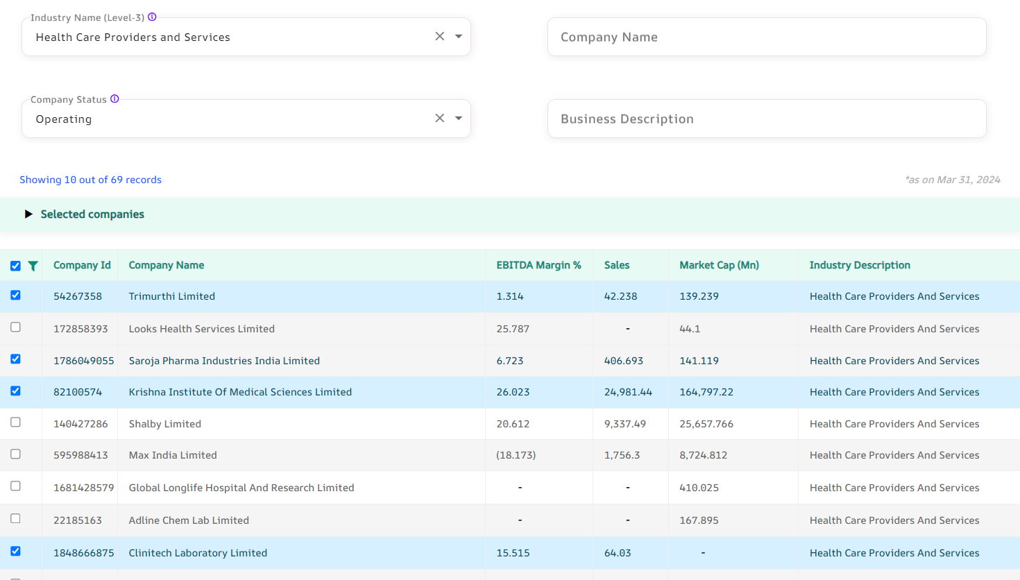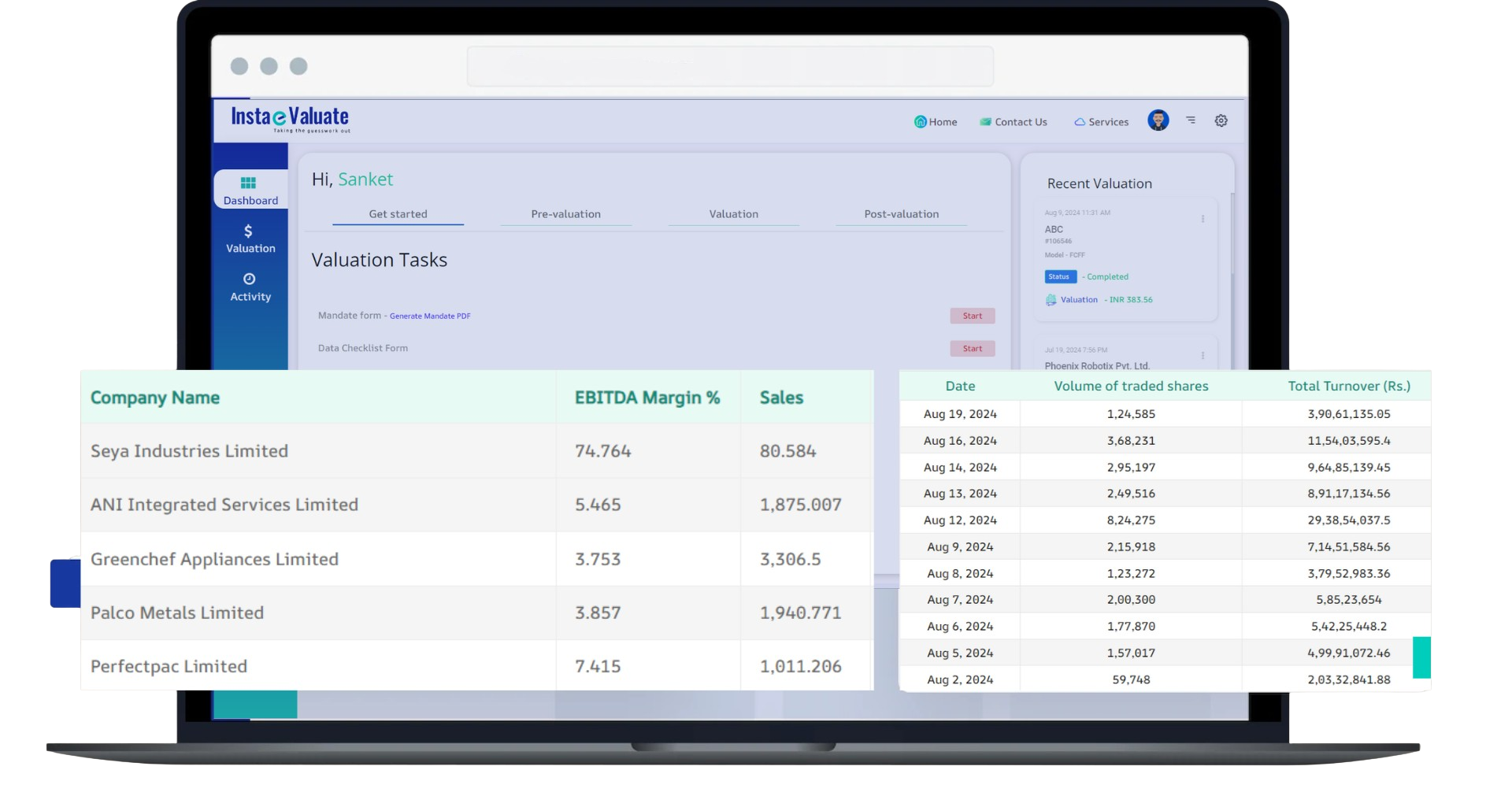 Comparing a private company with its peers is a common valuation approach, but finding the right multiples be challenging. InstaeValuate simplifies this task with its peer and transaction search feature, allowing you to: